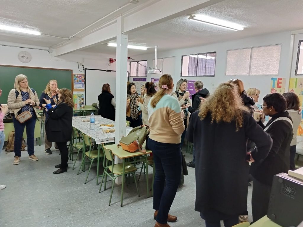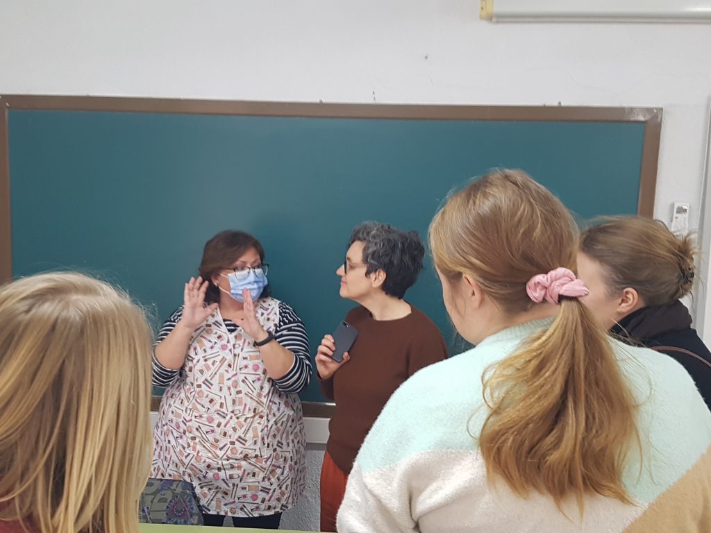 Tras la bienvenida pudimos contar con toda nuestra comunidad educativa que les fue enseñando por grupos a todos los profesores visitantes cada una de las enseñanzas del centro y alguna actividad habitual de la clase para que pudieran comprobar el funcionamiento de nuestra escuela.