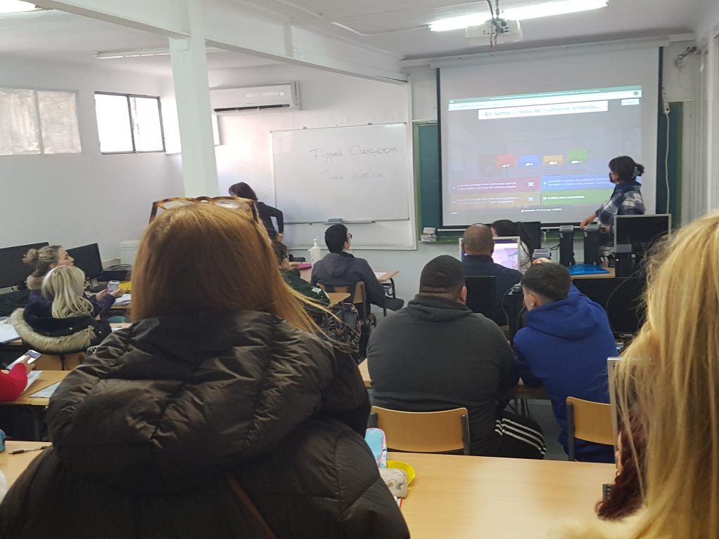 Por último, pudimos explicar nuestro proyecto Flipped Classroom en Formación Profesional Básica, dándoles a conocer cómo surgió, el desarrollo del mismo, y la gran aceptación que ha tenido entre el alumnado y la comunidad educativa regional y nacional gracias al reconocimiento de los Premios Miguel Hernández.